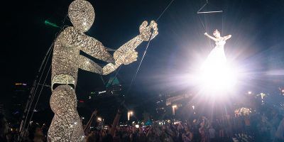 Einmalig auf dieser Welt – Bis zu 8 Meter große handgesteuerte Puppen: In Veranstaltungen weltweit zeigt DUNDU sich als eine bewegte und bewegende, universelle Leinwand, auf die das Publikum seine Fantasien, Sehnsüchte und Hoffnungen projizieren kann.